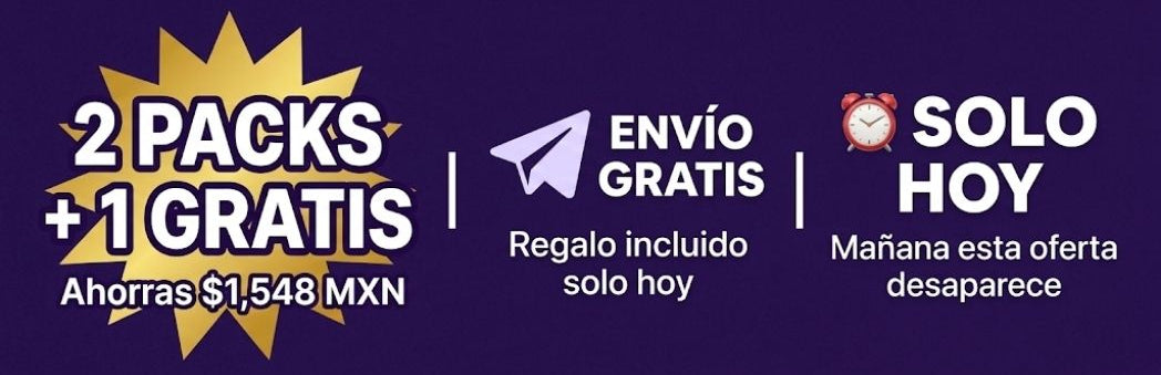 El envío va incluido pero solo en lo que dure nuestra oferta, no pagas nada extra. Pidiendo hoy tu paquete sale en 24-48 hrs y lo tienes en tu puerta en 10 a 15 días.